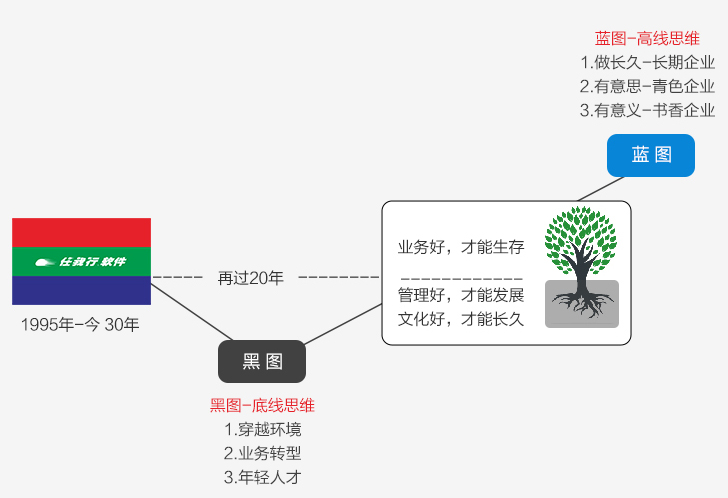 任我行成立于1995年,到今天已經(jīng)30年了。我們的愿景是做成一家長(zhǎng)期企業(yè),至少再活40年。
